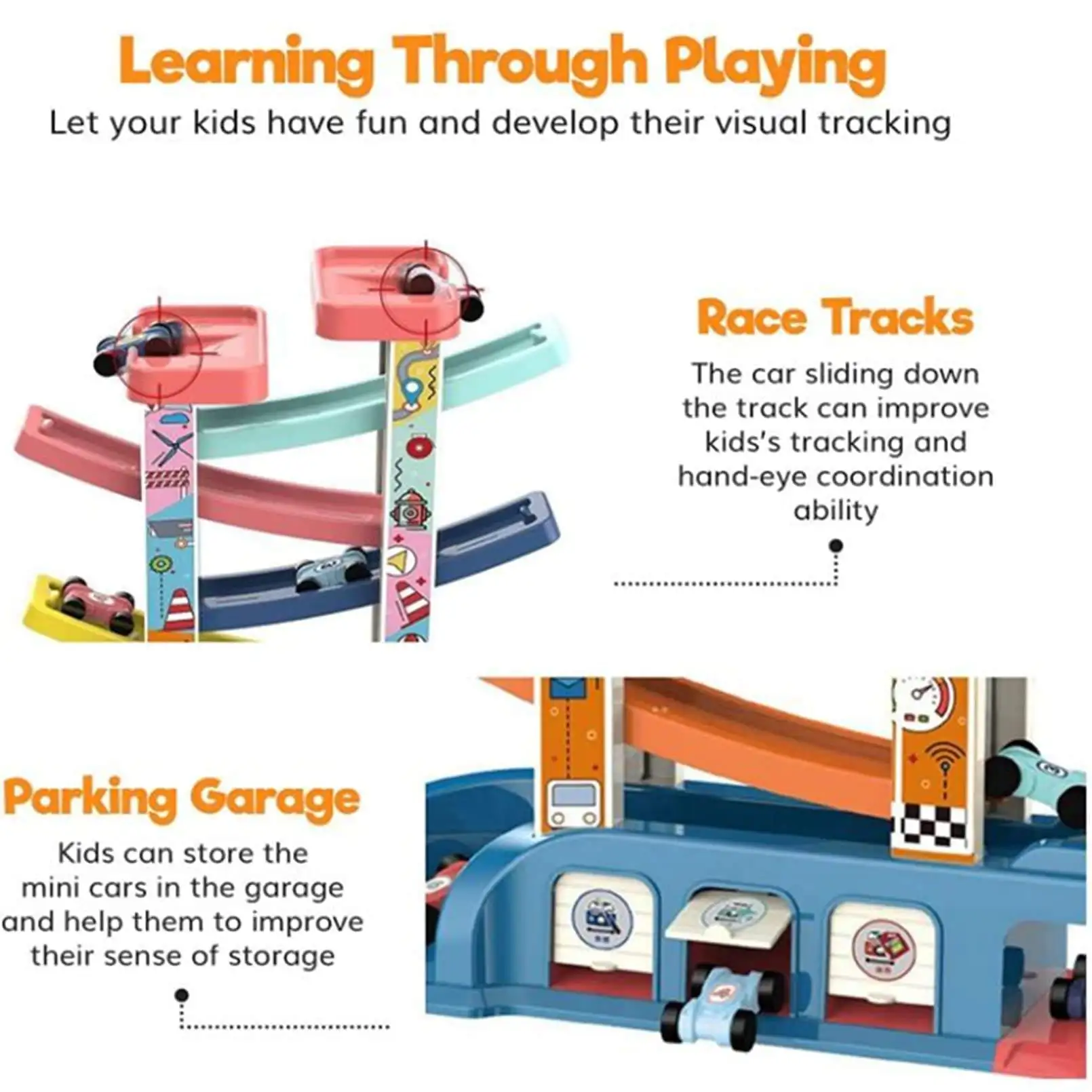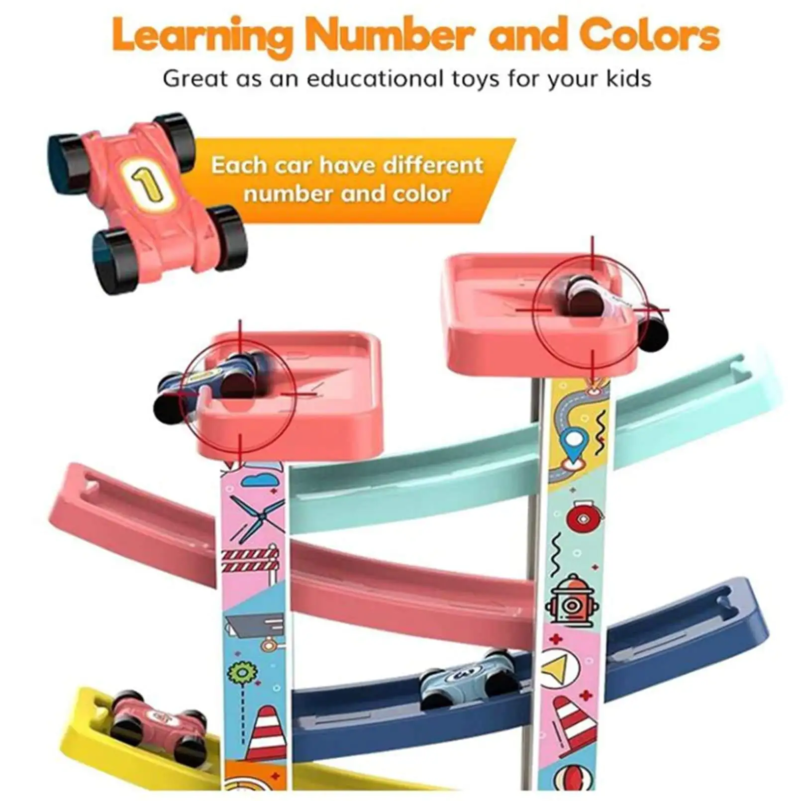 DIY Interactive Gliding Packing Track with 4 Tracks and 6 Cars
